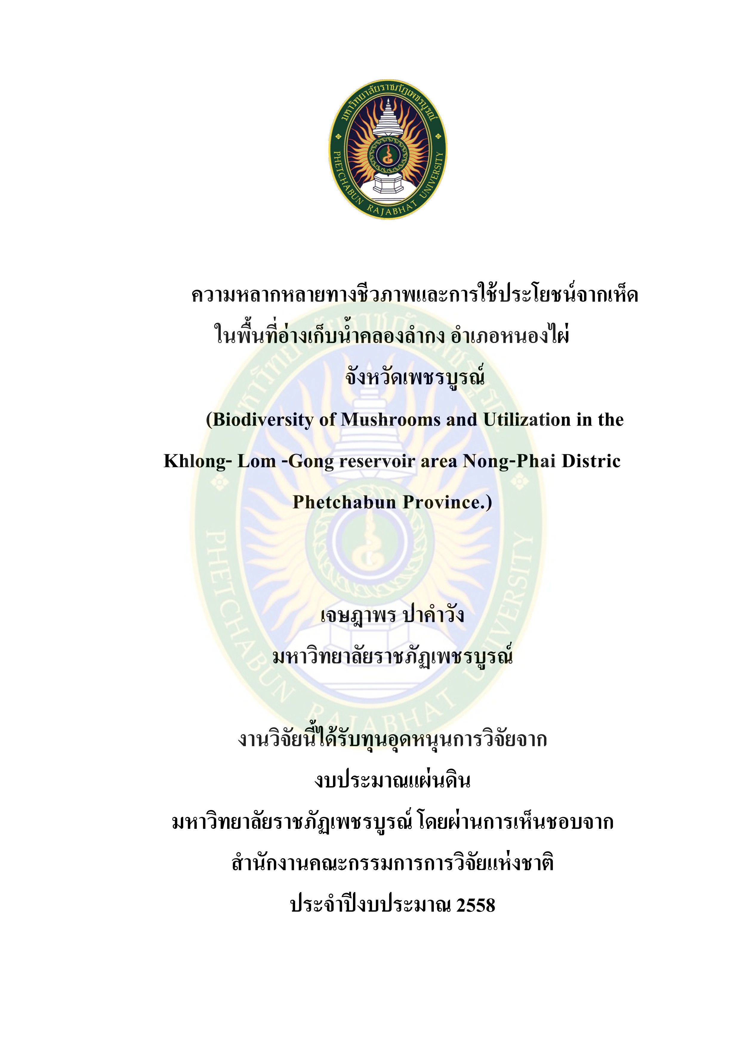 เกี่ยวกับ ความหลากหลายทางชีวภาพและการใช้ประโยชน์จากเห็ดในพื้นที่อ่างเก็บน้ำคลองลำกง อำเภอหนองไผ จงหวัดเพชรบูรณ์