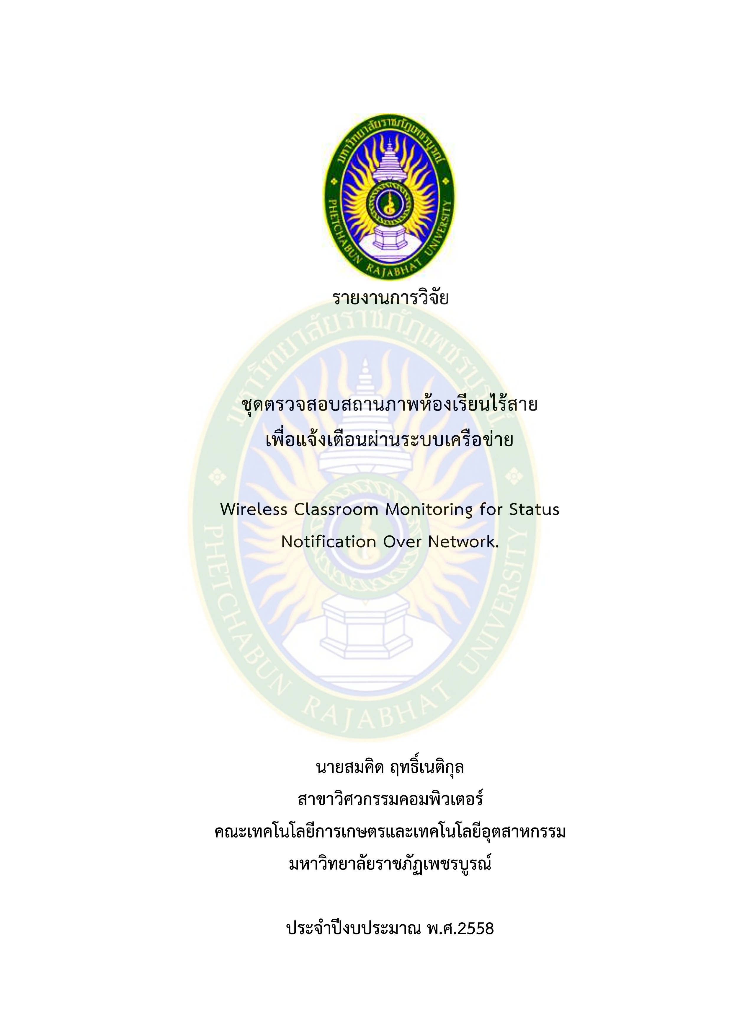 เกี่ยวกับ ชุดตรวจสอบสถานภาพห้องเรียนไร้สายเพื่อแจ้งเตือนผ่านระบบเครือข่าย