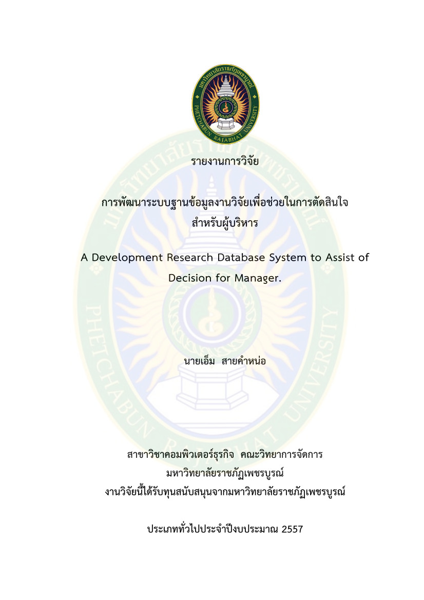 เกี่ยวกับ การพัฒนาระบบฐานข้อมูลงานวิจัยเพื่อช่วยในการตัดสินใจสำหรับผู้บริหาร