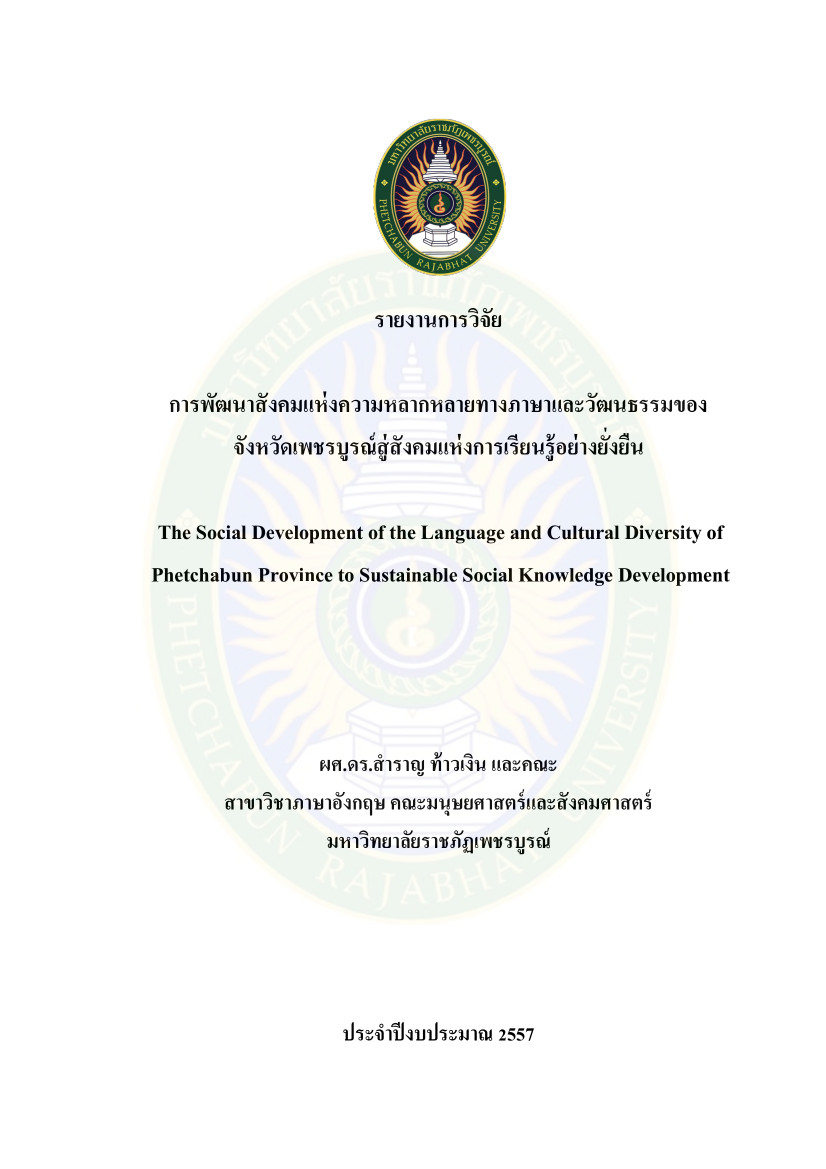 เกี่ยวกับ การพัฒนาสังคมแห่งความหลากหลายทางภาษาและวัฒนธรรมของจังหวัดเพชรบูรณ์สู่สังคมแห่งการเรียนรู้อย่างยั่งยืน