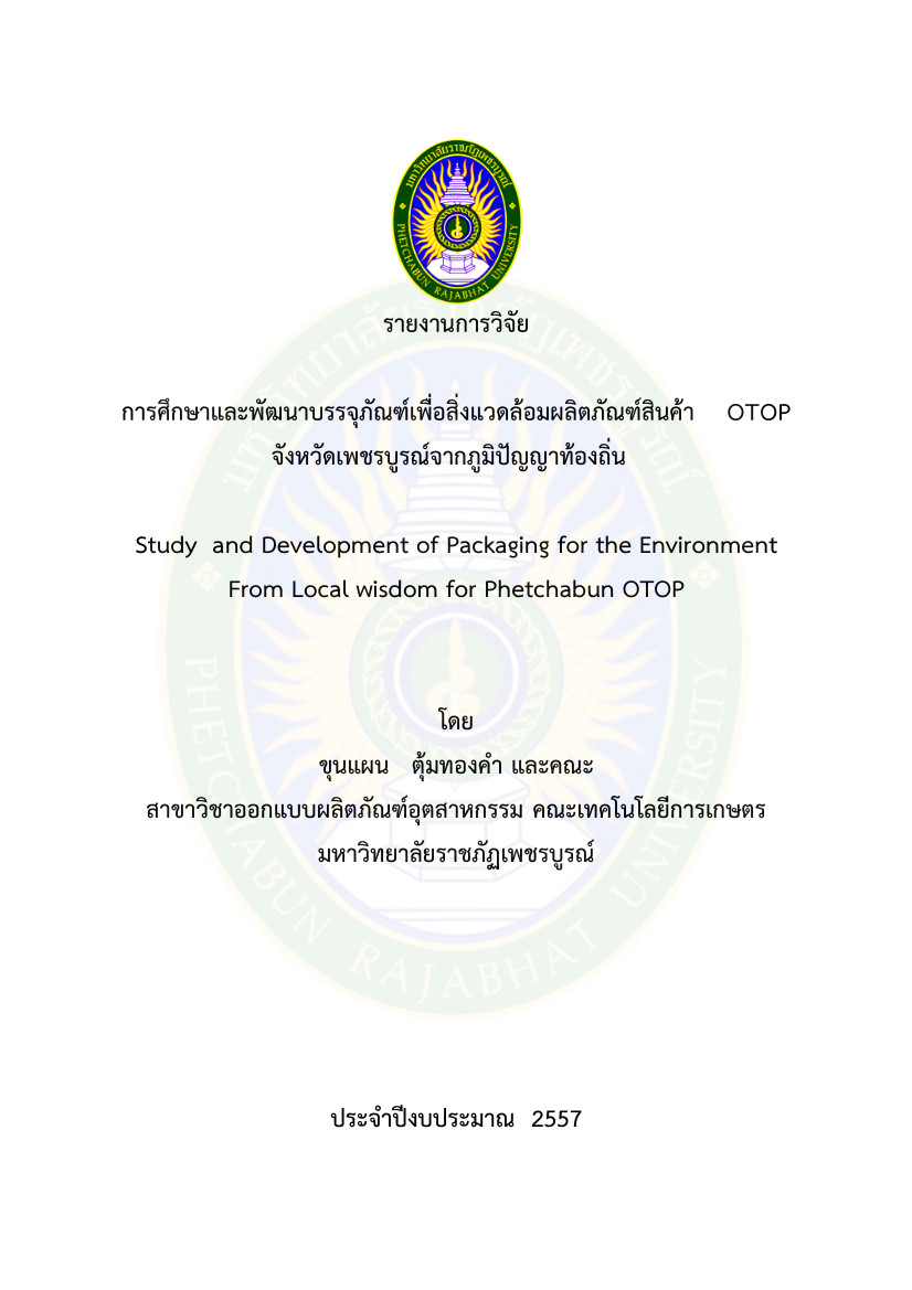 เกี่ยวกับ การศึกษาและพัฒนาบรรจุภัณฑ์เพื่อสิ่งแวดล้อมผลิตภัณฑ์สินค้า OTOP จังหวัดเพชรบูรณ์จากภูมิปัญญาท้องถิ่น