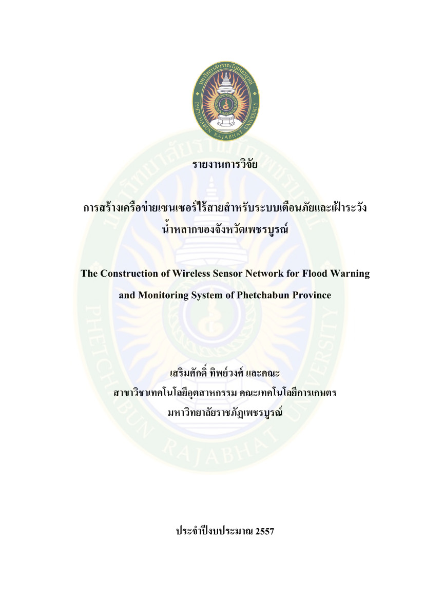 การสร้างเครือข่ายเซนเซอร์ไร้สายสำหรับระบบเตือนภัยและเฝ้าระวังน้ำหลากของจังหวัดเพชรบูรณ์