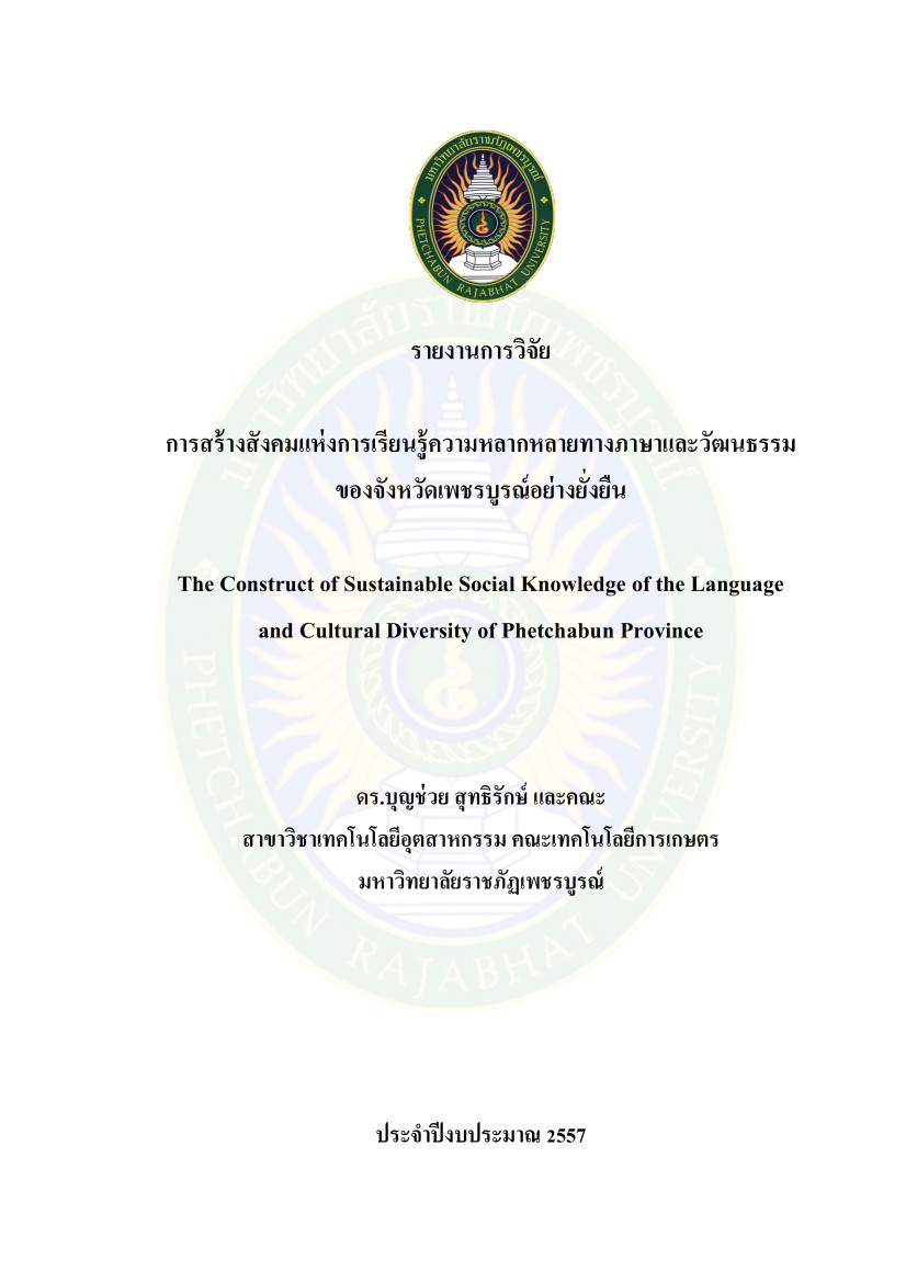 เกี่ยวกับ การสร้างสังคมแห่งการเรียนรู้ความหลากหลายทางภาษาและวัฒธรรมของจังหวัดเพชรบูรณ์อย่างยั่งยืน