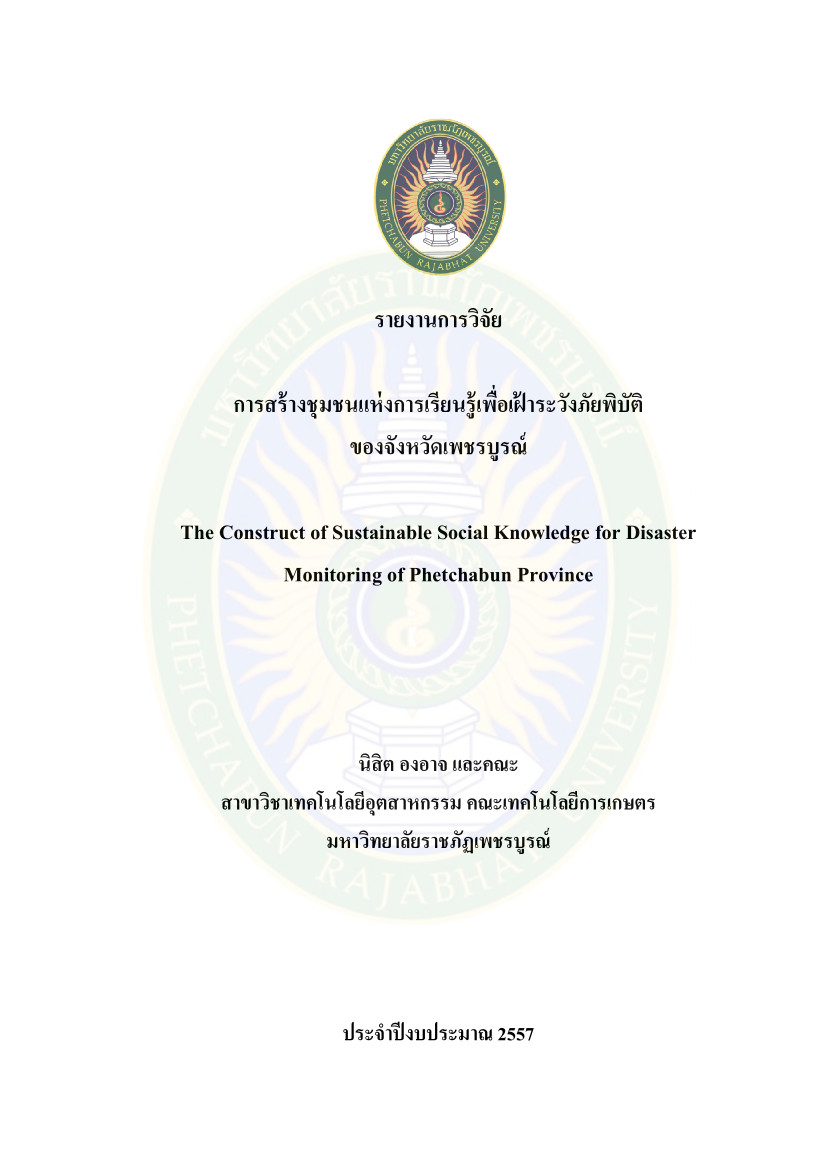 เกี่ยวกับ การสร้างชุมชนแห่งการเรียนรู้เพื่อเฝ้าระวังภัยพิบัติของจังหวัดเพชรบูรณ์